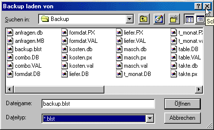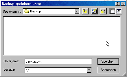 !!! Es muß ein Dateiname angegeben werden. In dieser Datei werden zum Wiederherstellen der Daten notwendige Informationen gespeichert.