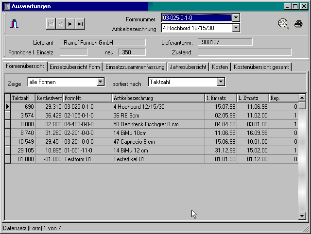 In diesem Formular wird eine Übersicht der erfaßten Formen angezeigt. Filter Die angezeigte Datenmenge läßt