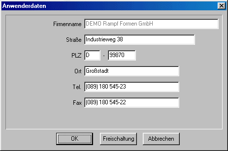 Sollte das Programm sich durch Änderung der Systemkonfiguration in den Demomodus zurücksetzen, gehen keine Daten verloren. Die Daten können lediglich bis zur erneuten Freischaltung nicht geändert werden. |