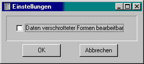Funktion Hier wird festgelegt, ob die Daten der als verschrottet markierten Formen bearbeitbar bzw. anzeigbar sind. Ist das Kontrollkästchen aktiviert, können die Daten (abhängige Daten) verschrotteter Formen angezeigt und bearbeitet werden. Die Formenstammdaten können erst bearbeitet werden, wenn die Form "wiederhergestellt" wurde. In den Formenstammdaten können generell alle Formen angezeigt werden. Die verschrotteten Formen werden jedoch aus den Suchlisten nach Form und Artikelnummer entfernt, wenn sie nicht vorher in Einstellungen aktiviert wurden. Sie sind daher dann in keinem Eingabeformular und in keiner Auswertung verfügbar. In der Formenanfrage/Bestellung sind sie ebenfalls immer verfügbar. Werden die Daten verschrotteter Formen angezeigt, so werden diese dadurch gekennzeichnet, das in den Kopfzeilen alle, die Form betreffenden Daten grau erscheinen. Die Daten verschrotteter Formen fließen jedoch unabhängig von der Einstellung in Berechnungen wie zB. die Jahresübersicht mit ein. |